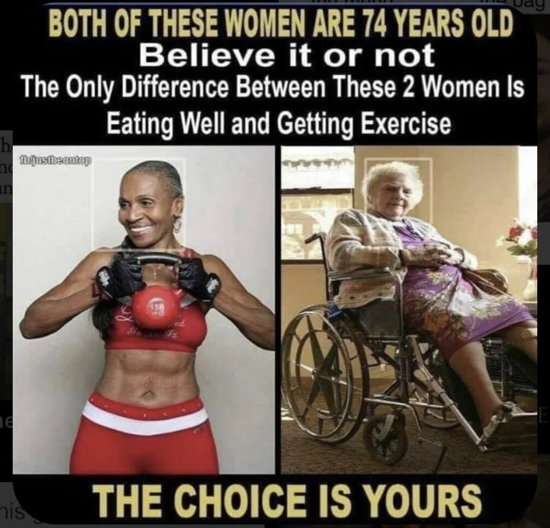 The choices are yours: I want you to live a long healthy life, not limited by your physical capabilities and more importantly, healthy on the inside, no matter what that looks like on the outside!